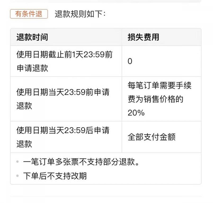 平台关于退票规则的说明(截图)