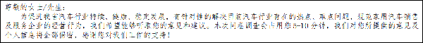 (二)体验式调查。结合问卷中反映的问题,抽取家用汽车销售及服务企业进行走访体验,填写调查表,对家用汽车消费过程中存在不符合法律法规、侵害消费者合法权益的行为进行收集。