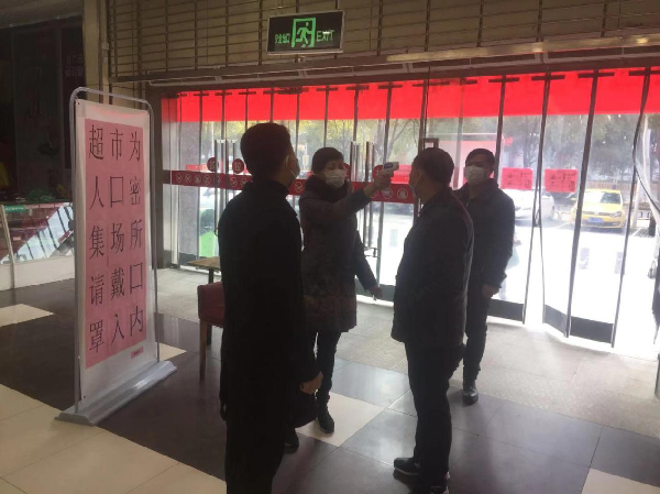 落实联防联控。对各大药店、农贸市场、大型商超、酒店为进入的人员测体温、免费发放口罩、经营场所消毒的情况进行每日巡查,为农贸市场、大型商超、社区配备测温仪60个,安排口罩3.6万余个,向社区送酒精等消毒用品30斤。