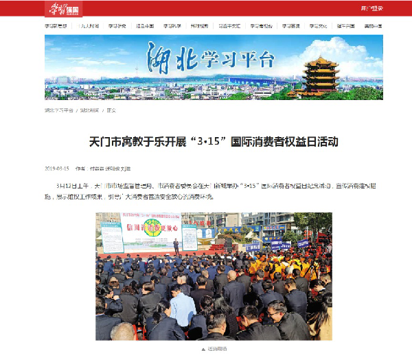 2018年“3·15”活动期间,天门市消费者委员会联合司法、商务、质监、安监等部门设立了宣传服务台,向广大市民发放宣传资料,普及消费维权知识;现场受理调处消费者投诉,维护消费者权益;通过实物展示、现场讲解,向市民介绍常见假冒伪劣产品鉴别知识。当天,现场共发放各类宣传资料5000余份,受理消费者诉求20余起。2019年,在天门新城举办“3·15”国际消费者权益日纪念活动,现场公布2018年度天门市消费维权十大典型案例,现身说法助力消费者维权。2018年8月30日,全省“品质消费教育乡村行”启动仪式暨宣传贯彻《湖北省消费者权益保护条例》现场咨询服务活动在天门市岳口镇召开,这进一步将消费维权宣传教育活动向农村延伸。