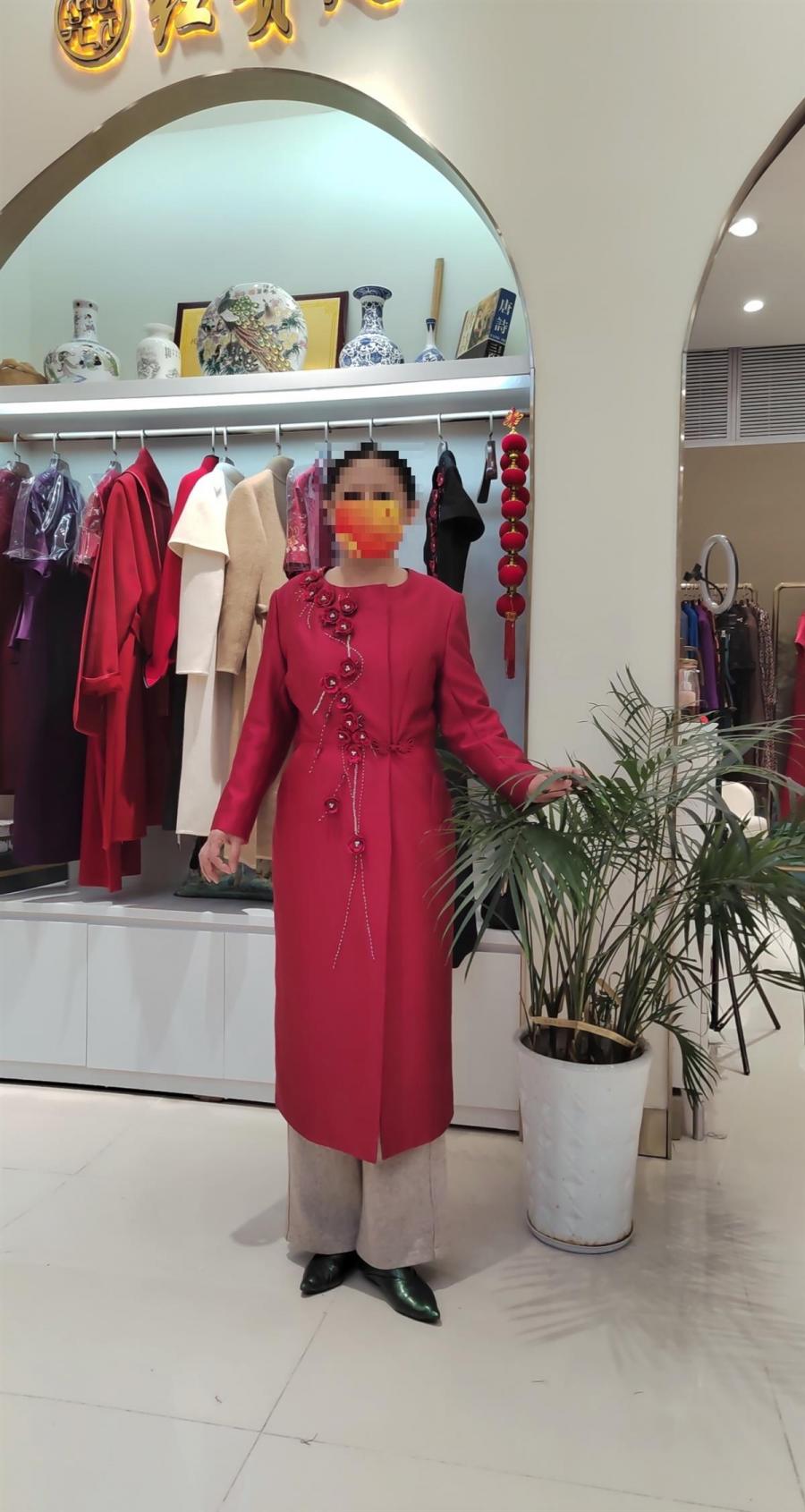 2022年11月15日,潘女士准备买一套喜庆的衣服,以出席女儿的婚礼。她在位于青山区和平大道的一家名为“红贵人服饰”的店铺内,看中了一套枣红色的定制礼服。当时,她试穿了一下店里的样衣,觉得样式不错,但是尺码略大。店员告诉她,可以根据她的具体尺寸量体裁衣,但定制衣服需要15-20天交付,因此试衣时间大约在12月10日左右。
